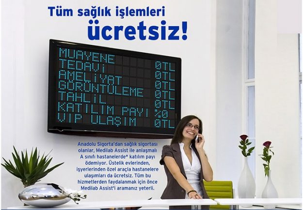 Anadolu Sigorta’dan sigortası olanlar Medilab Assist ile anlaşmalı A* sınıfı hastanelerde katılım payı ödemiyor. Üstelik evlerinden, iş yerlerinden özel araçlarla hastaneler ulaşımları da ücretsiz.